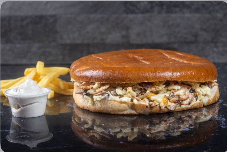 ستيك لحمة 100 غم ستيك لحمة ، بصل ، موزريلا ، فطر 2 د.أ2.1 د.أ